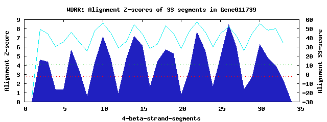 8 WD40-repeats found in QUERY=Gene011739 (Len=718):(Red - Z-score>4.0)