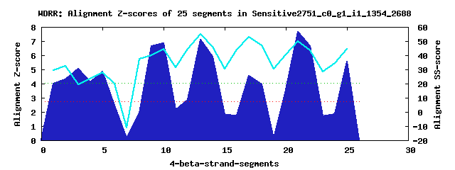 6 WD40-repeats found in QUERY=Sensitive2751_c0_g1_i1_1354_2688 (Len=338):(Red - Z-score>4.0)
