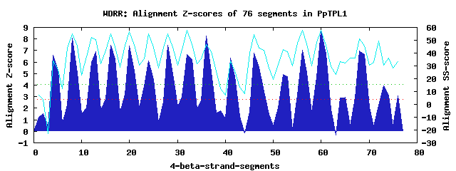 17 WD40-repeats found in QUERY=PpTPL1 (Len=1158):(Red - Z-score>4.0)