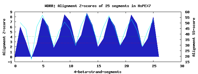 7 WD40-repeats found in QUERY=HsPEX7 (Len=323):(Red - Z-score>4.0)