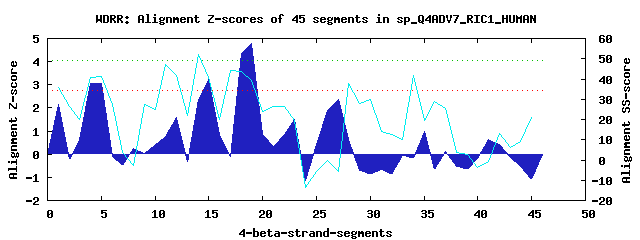 3 WD40-repeats found in QUERY=sp_Q4ADV7_RIC1_HUMAN (Len=1423):(Red - Z-score>4.0)