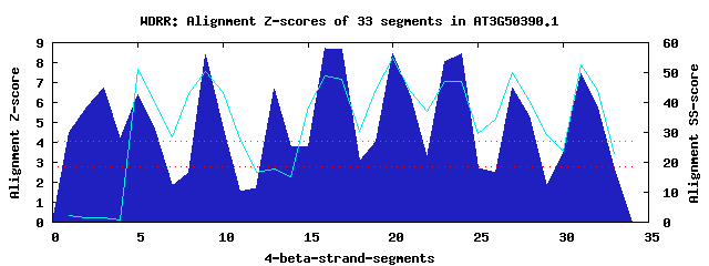 9 WD40-repeats found in QUERY=AT3G50390.1 (Len=469):(Red - Z-score>4.0)