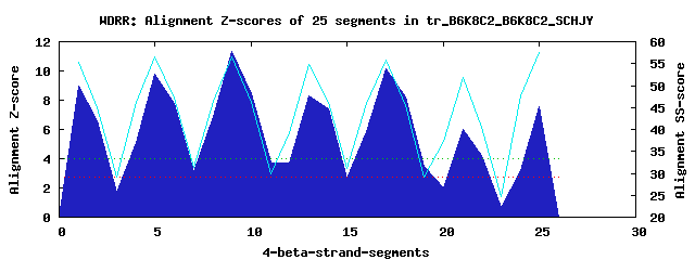 7 WD40-repeats found in QUERY=tr_B6K8C2_B6K8C2_SCHJY (Len=314):(Red - Z-score>4.0)