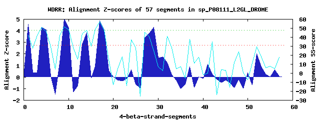 6 WD40-repeats found in QUERY=sp_P08111_L2GL_DROME (Len=1161):(Red - Z-score>4.0)