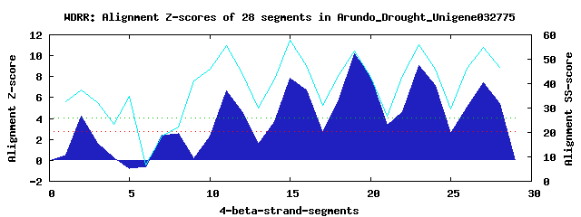 6 WD40-repeats found in QUERY=Arundo_Drought_Unigene032775 (Len=476):(Red - Z-score>4.0)