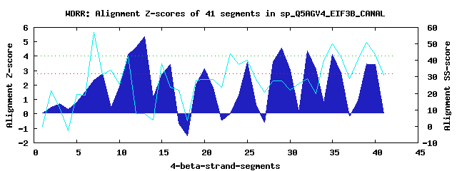 9 WD40-repeats found in QUERY=sp_Q5AGV4_EIF3B_CANAL (Len=739):(Red - Z-score>4.0)