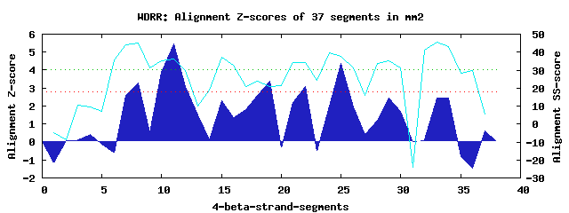 5 WD40-repeats found in QUERY=mm2 (Len=763):(Red - Z-score>4.0)