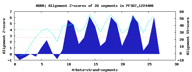 5 WD40-repeats found in QUERY=PF3D7_1224400 (Len=595):(Red - Z-score>4.0)