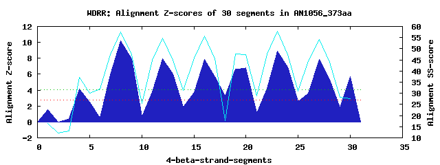 7 WD40-repeats found in QUERY=AN1056_373aa (Len=373):(Red - Z-score>4.0)
