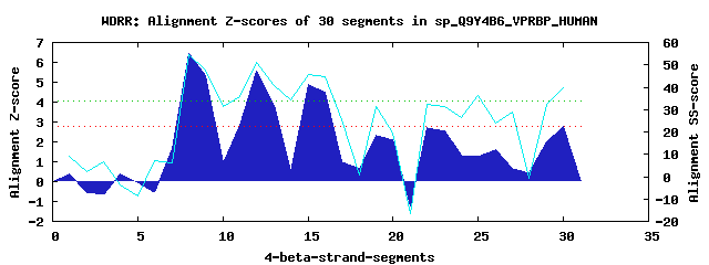 3 WD40-repeats found in QUERY=sp_Q9Y4B6_VPRBP_HUMAN (Len=1507):(Red - Z-score>4.0)