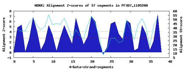 10 WD40-repeats found in QUERY=PF3D7_1105200 (Len=463):(Red - Z-score>4.0)