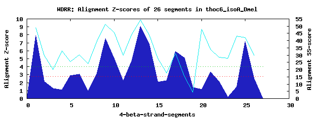 7 WD40-repeats found in QUERY=thoc6_isoA_Dmel (Len=350):(Red - Z-score>4.0)