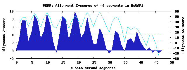 9 WD40-repeats found in QUERY=HsUAF1 (Len=677):(Red - Z-score>4.0)