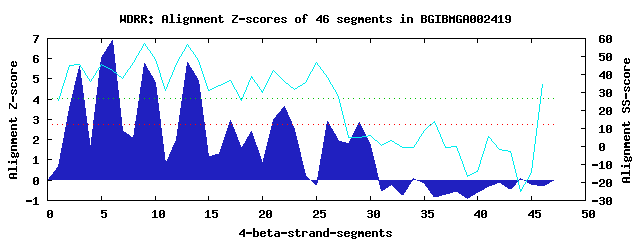 7 WD40-repeats found in QUERY=BGIBMGA002419 (Len=1306):(Red - Z-score>4.0)