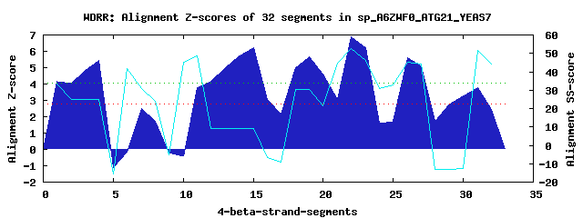 9 WD40-repeats found in QUERY=sp_A6ZWF0_ATG21_YEAS7 (Len=496):(Red - Z-score>4.0)