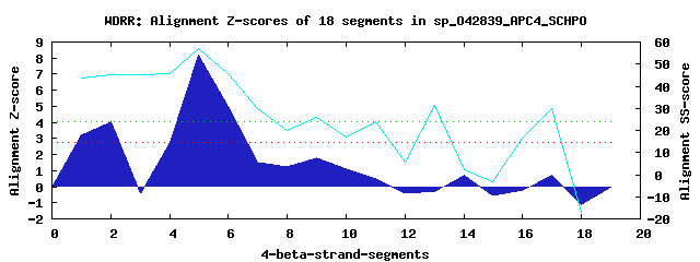 2 WD40-repeats found in QUERY=sp_O42839_APC4_SCHPO (Len=719):(Red - Z-score>4.0)