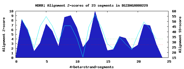 6 WD40-repeats found in QUERY=BGIBMGA000229 (Len=337):(Red - Z-score>4.0)